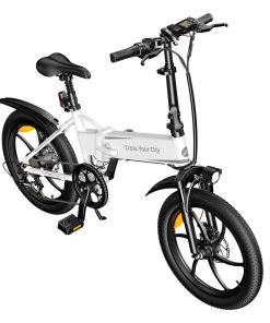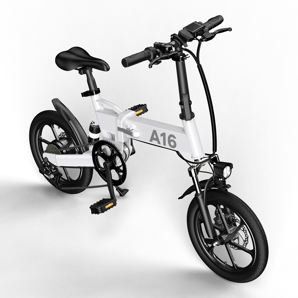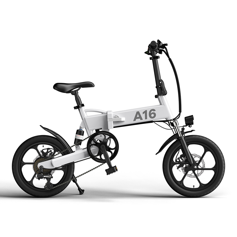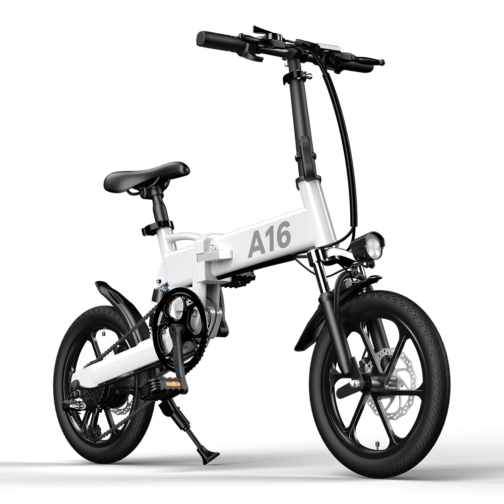 ADO A16 Electric Folding Bike 16 Inch City Bicycle 350W Hall Brushless Motor SHIMANO 7-Speed Rear Derailleur 36V 7.8Ah Removable Battery 35km/h Max Speed Up To 35km Max Range IPX5 Double Shock-absorption Aluminum Alloy Frame 16*1.95 Tires – White