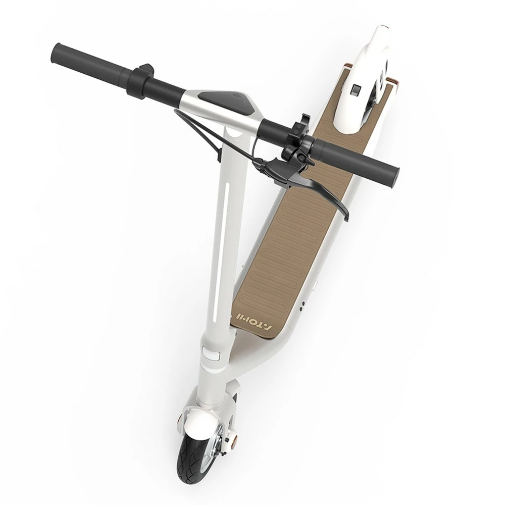 Atomi Alpha Folding Electric Scooter 9 Inch Tires 650W Motor 30Km/h Max Speed 36V 10Ah Battery For 40KM Max Range 120KG Max Load Support App Control Built-in Combination Lock – Zinc White