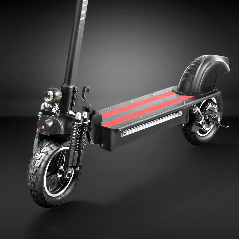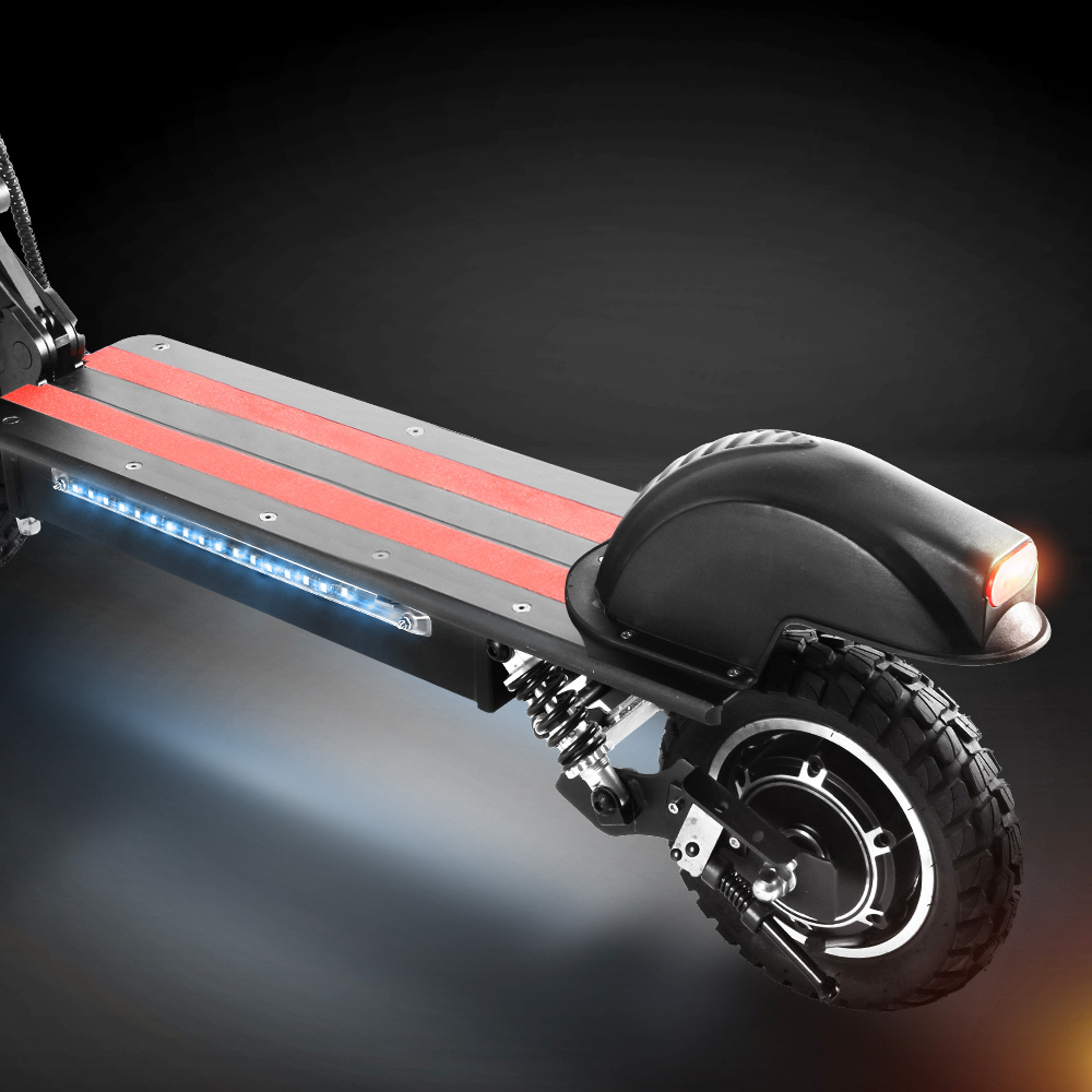 10-inch pneumatic front and rear tires help soften out rough surfaces and deliver a smoother ride on uneven terrain. Double shock absorption system(front and rear wheels) provides superior comfort over rough or uneven surfaces.