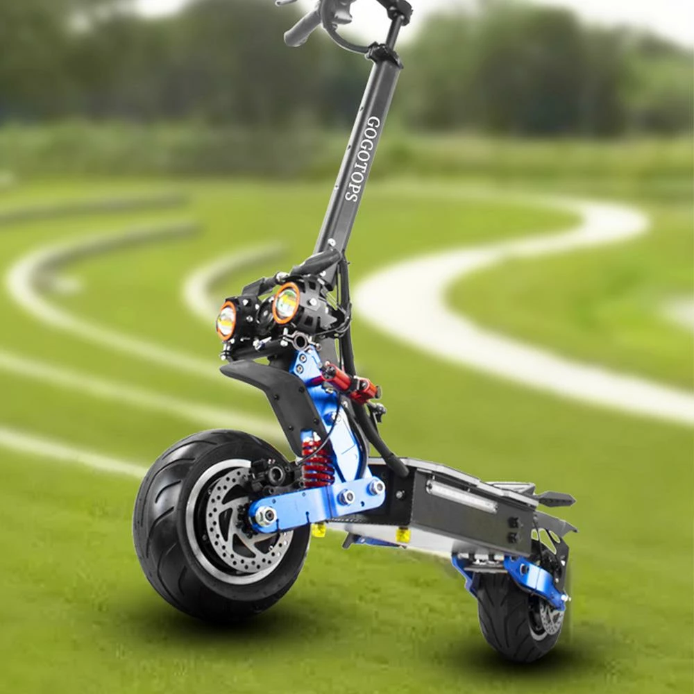 GS8 3000W*2 is with unique blue color of gogotops, it is a dreamed color of big boys. 60V 6000W with fat wide tires , speed up to 80km/h, mileage up to 80km, with a battery capacity 38.4Ah.