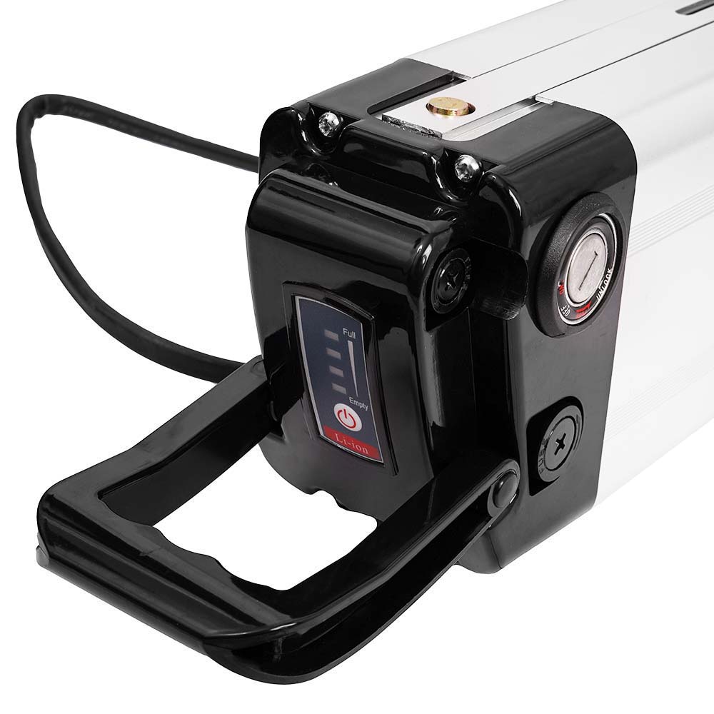 The lithium-ion battery is easy to install and remove due to its lightweight and small size. Fits for an electric bicycle 600W.