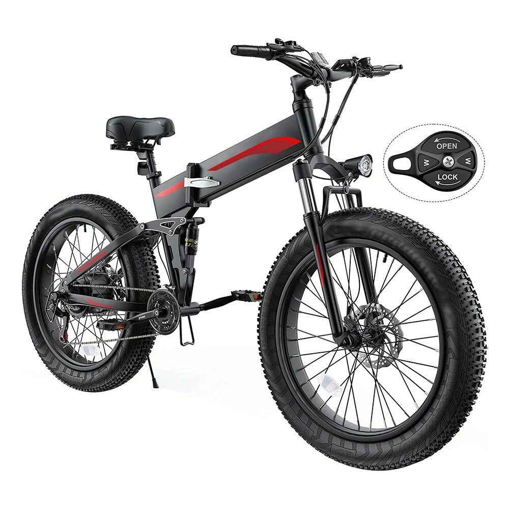 K5F Electric Bike 26*4.0 Inch Fat Tire, 500W Motor 35Km/h Max Speed, 48V 10Ah Battery, Disc Brake, 120kg Load – Black & Red