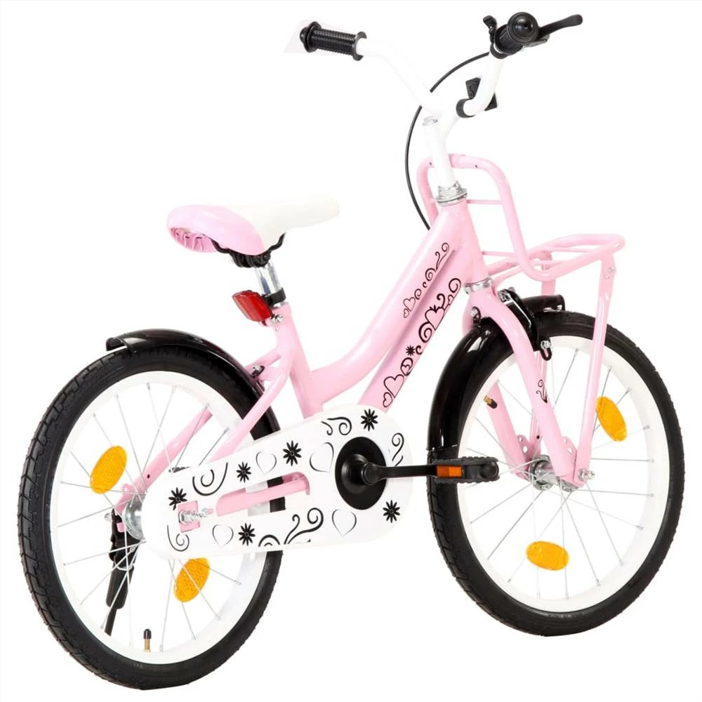 This stylish and sturdy kids’ bike with 18-inch wheels is a perfect gift for your child. The bicycle is designed to provide years of fun and equipped with height-adjustable saddle and handlebar. With the front carrier, your kids can easily take their toys. The side training wheels add stability that helps little ones learn to ride. You can easily remove them when they are no longer needed. The kids’ bicycle comes with a chain guard to prevent the chain from entrapping rider’s feet and clothes. With decorated cute prints, this bicycle will surely win your child’s heart. The kids’ bicycle has a strong frame made of MIG (inert metal gas) welded steel. The foam-padded saddle adds to the seating comfort. Additionally, the low stand-over frame allows for easy access. The bike and all the parts come in a carton. The wheels, steering wheel and saddle, must be assembled to the frame. The wheels, brakes and gears must be set and fine-tuned in a way they work correctly. Important note: The bike is not ready-to-ride when delivered. You must assemble and fine-tune it before using the bike.Note: There may be local legal requirements for lighting, reflector etc. Always follow the requirements. Otherwise do not ride the bicycle in public areas.