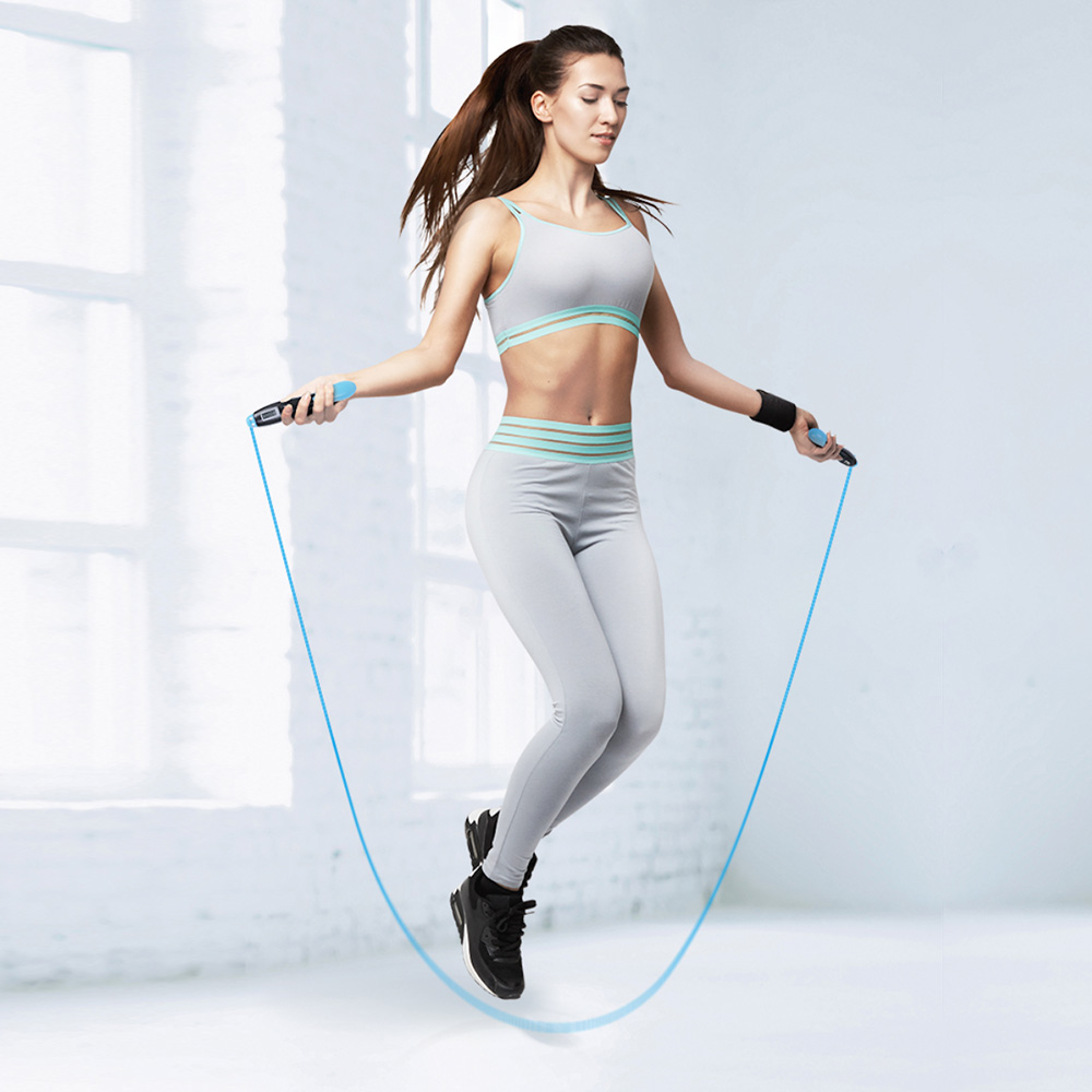 HD display counts, miles, kilometers, and calorie four modes make skipping easier.