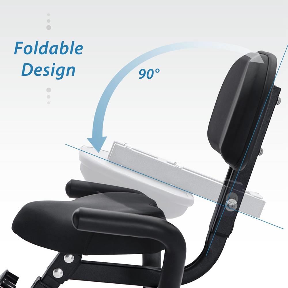 This upright exercise bike with a modern look offers a clear frame and compact size that is ideal for small spaces. When you’re done every time, you can fold it to almost half of the original and stow it away to save space.