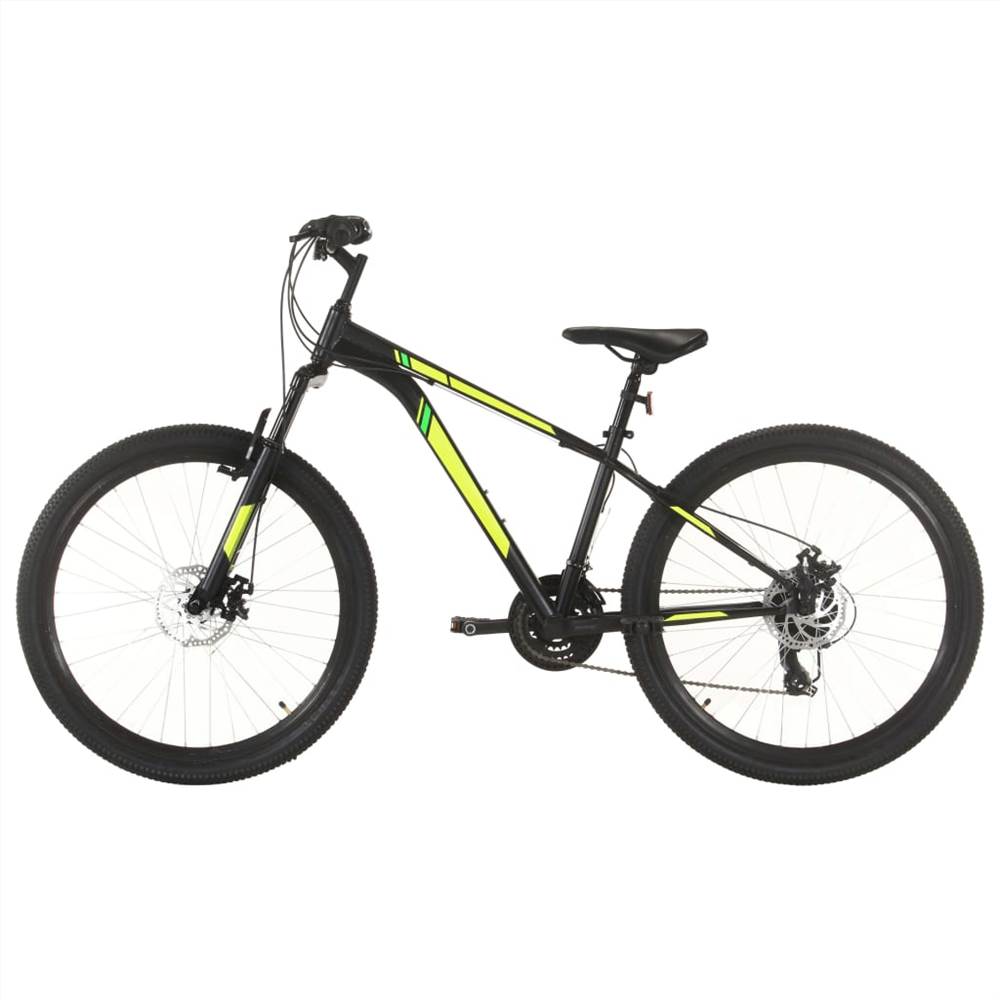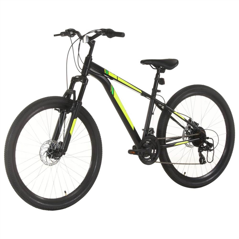 Hit your favorite trail with this mountain bike! This bike with 27,5″ fat tires offers you a smooth riding experience even on rough terrain. The steel frame and suspension fork keep the ride smooth, while strong and light aluminium rims provide added stability. Motivation comes in the form of a 21-speed drivetrain featuring a Shimano front and back derailleur. Tool-free adjustable seat post makes it easy to find a comfortable fit. You can ride high or cruise down low with great ease. The disc brakes are designed for crisp all-condition stopping.